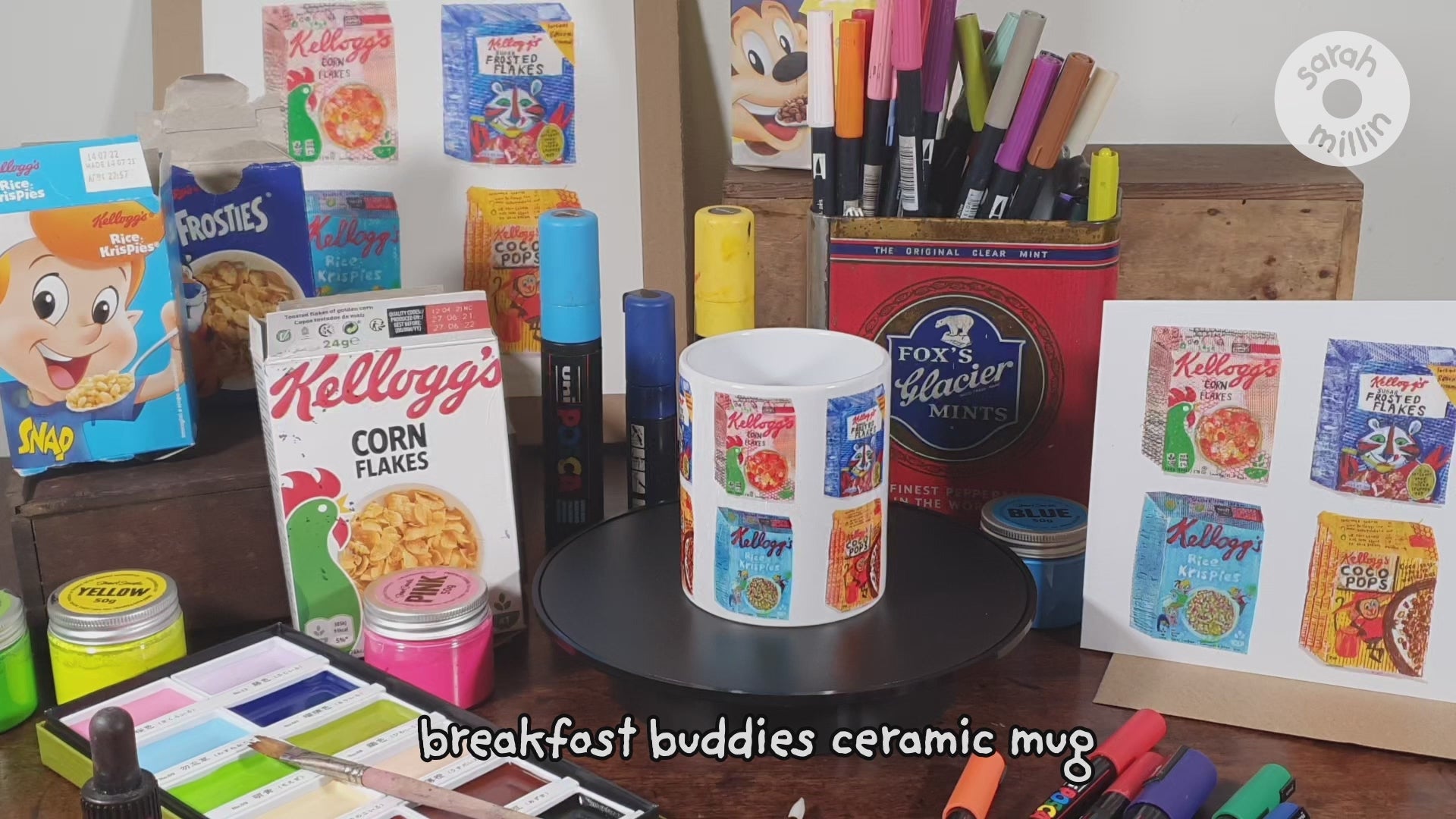 A selection of iconic breakfast cereals. Kelloggs Cornflakes, Frosties, Rice Crispies and Coco Pops.
