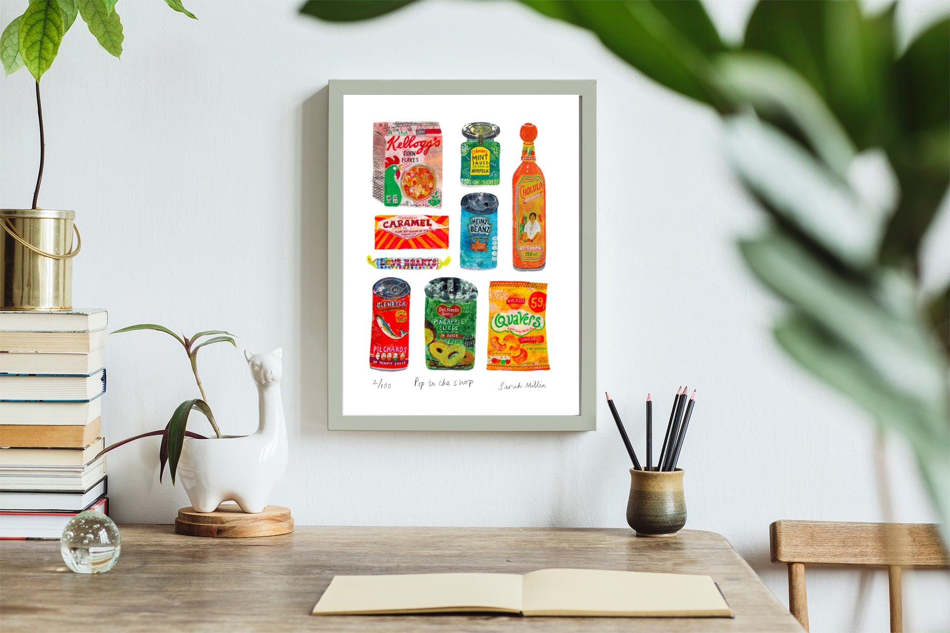Pop to the Shop features Kelloggs Corn Flakes, Colmans Mint Sauce, Heinz Beanz, Cholula, Tunnocks Caramel, Love Hearts, Cholula, Glenryck Pilchards, Del Monte Pineapple Slices and Walkers Quavers.