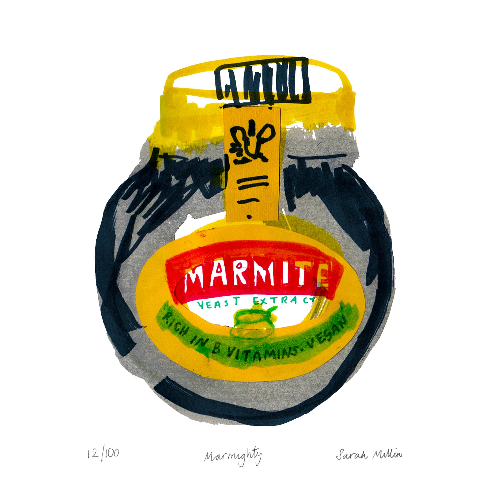 A custom product produced from mixed-media artwork, this print is of the love it or hate it spread Marmite.